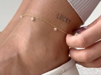 Сребърна гривна за глезен със златна капка скъпоценен камък - Лунен камък