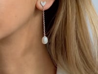 Елементът във формата на сърце, украсен с циркониеви камъни, е изработен, както и останалата част от бижуто, от сребро 925, а елегантното родиево покритие гарантира неговата дълготрайна издръжливост. Сребърните обеци Never Let You Go издържат във времето, като истински символ на любовта. Открийте и други изискани бижута с натурални перли от Indira.