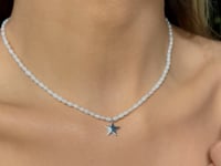 Тиана - Натурални Перли. Бижуто има дължина от 38 - 40 см, а височината му е 14 мм. Използваните натурални перли са с височина 3 мм.