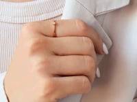 Елегантен пръстен от масивно 14K злато с диамант 0.05 ct, брилянтно шлифован и с цветова степен W/S-I. Неговият прост и изискан дизайн го прави лесен за интегриране във всеки стил, добавяйки нотка на дискретен блясък.