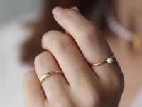 Този деликатен пръстен от 14K жълто злато е израз на изтънченост и елегантност. Украсен с великолепна култивирана перла в центъра си, неговият минималистичен дизайн перфектно допълва всеки стил, предлагайки нотка на вечна грация. Идеален за ежедневно носене или специални поводи, този пръстен прави фино изявление за женственост и добър вкус.