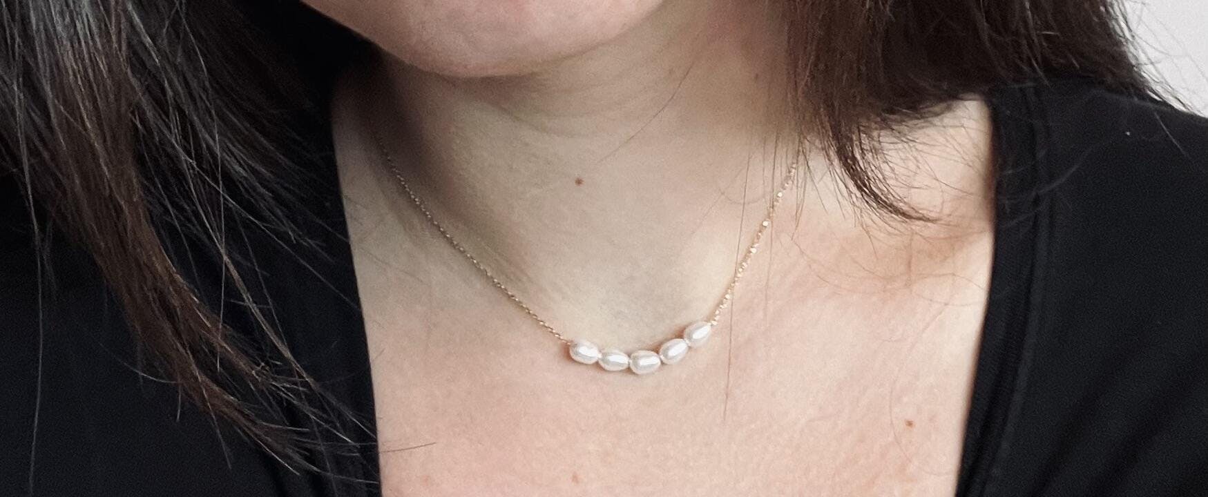 Елегантност в минималистична форма – това колие от сребро 925 с 14K златно покритие, украсено с естествено красиви перли, е перфектният аксесоар за всякакъв повод. Деликатната верижка подчертава внимателно подредените перли, добавяйки изискан и женствен чар.